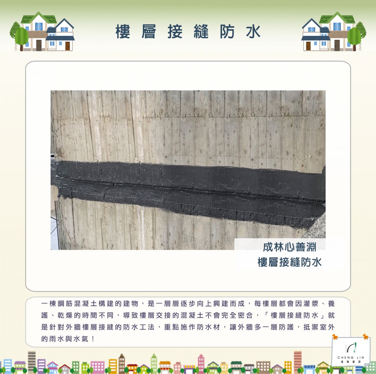 台灣地理位於亞熱帶氣候區,具有潮濕多雨的氣候特性,為抵禦外來的水份與水氣,當建築主體完成後便會進入一系列的防水工程,此次跟隨工程小知識的腳步,帶您了解防水工程其中一項的「樓層接縫防水」!