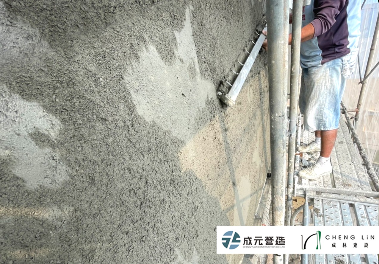 成林心善淵 泥作工程目前已來到了四樓外牆泥作打底!